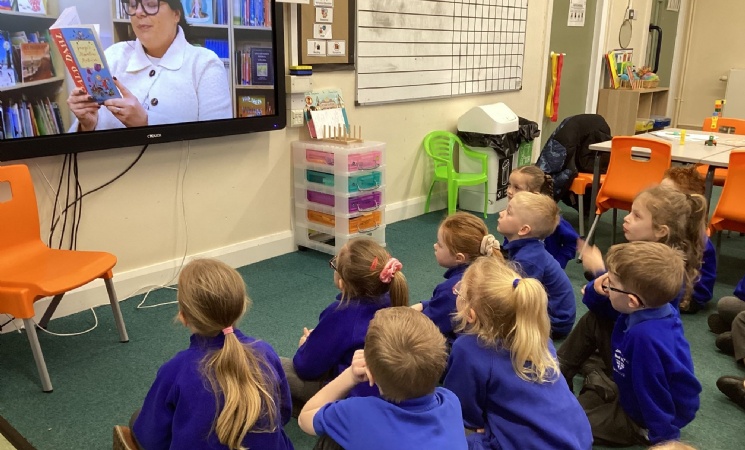 St. John's Hindley Green pupils being read a story