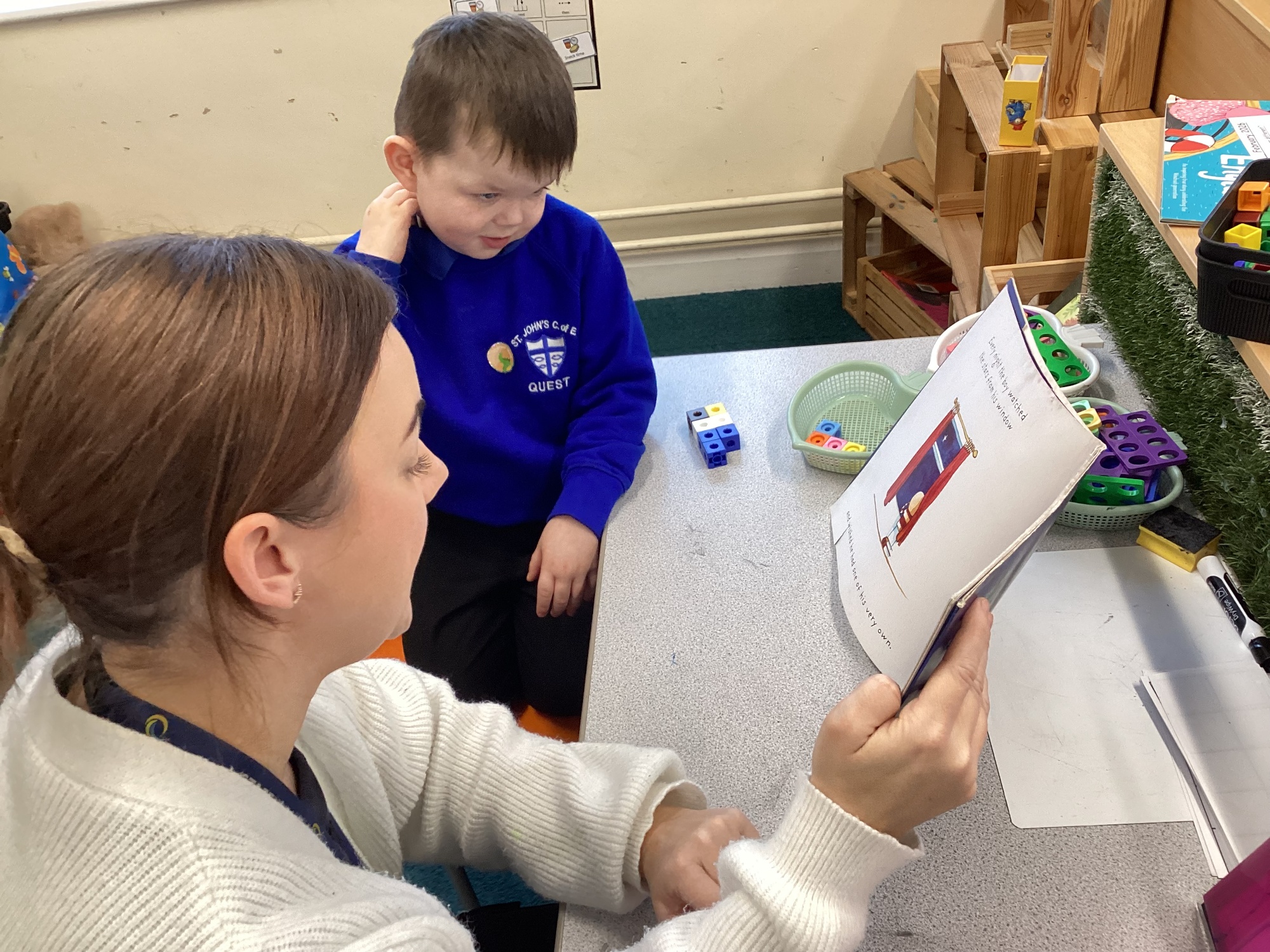 St. John's Abram Pupil being read a story
