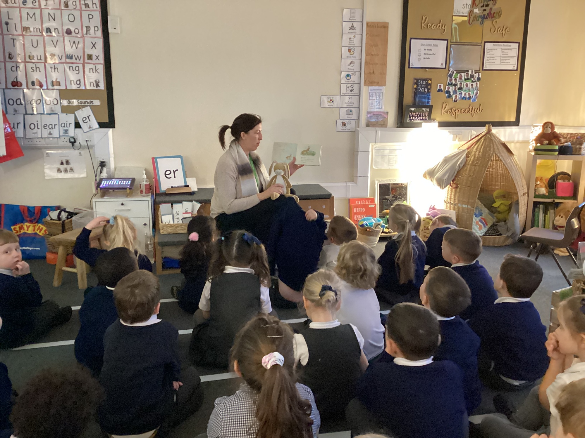 St. John's Hindley Green pupils being read a story